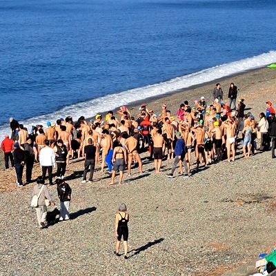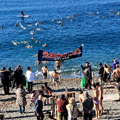 沼津市水泳連盟主催「千本浜寒中水泳」の安全管理のお手伝いです。