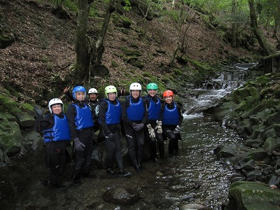 今日はビーチフェスで一緒にイベントをしている「カヤック・タパ」さんの案内で天城・滑沢渓谷で”キャニオニング”をしてきました。沢を歩いて、滑って、飛び込んで・・・童心に帰って皆はしゃいできました。