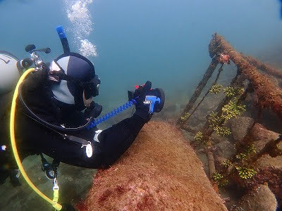 Yさん 陸上ではプロのカメラマンさん。ミドリイシサンゴを激写。水中写真に挑戦、まずは動かないものから撮っています。