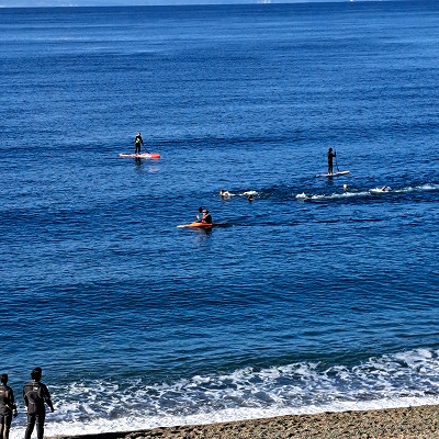 沼津市水泳連盟主催「千本浜寒中水泳」の安全管理のお手伝いです。
